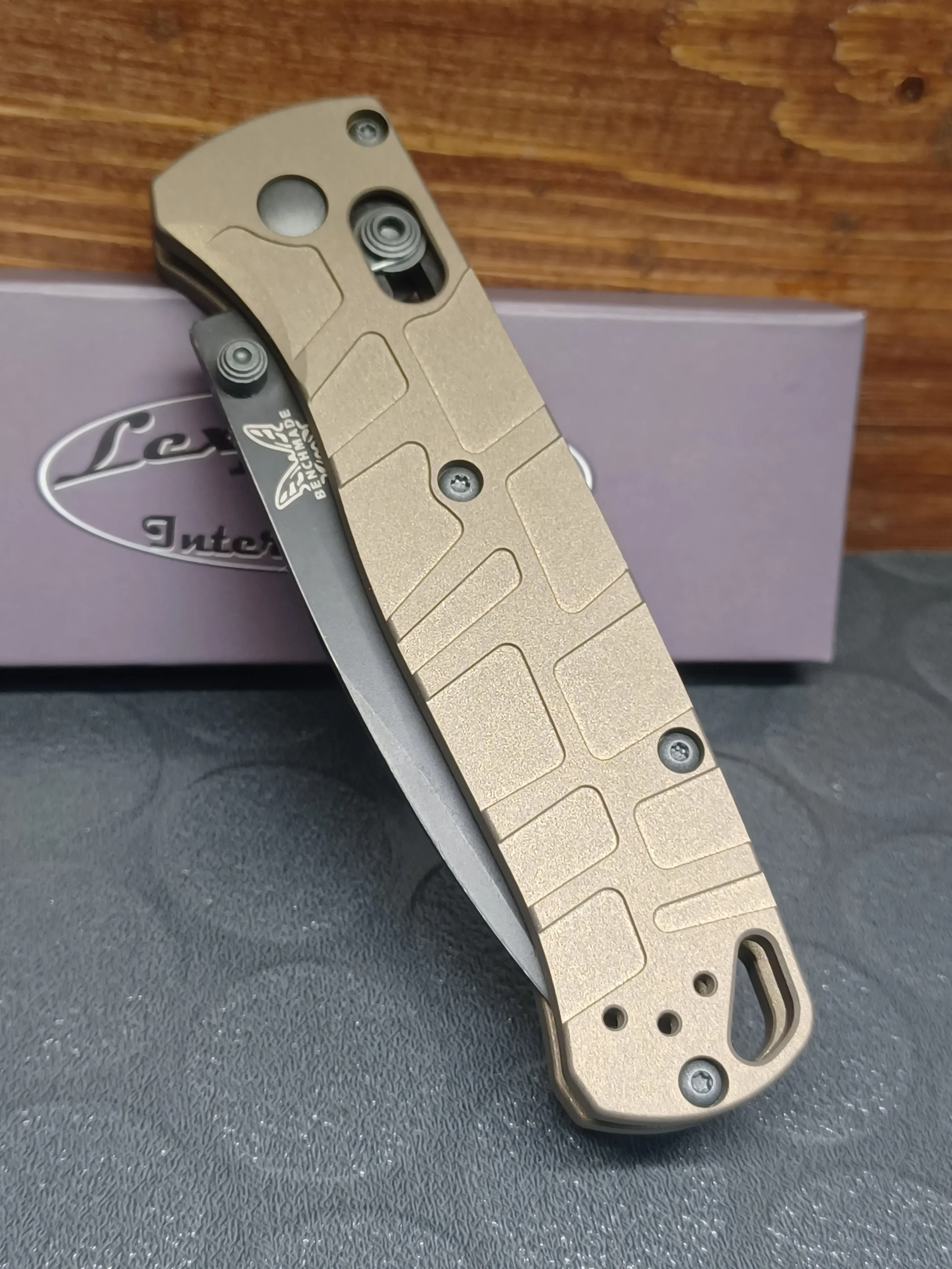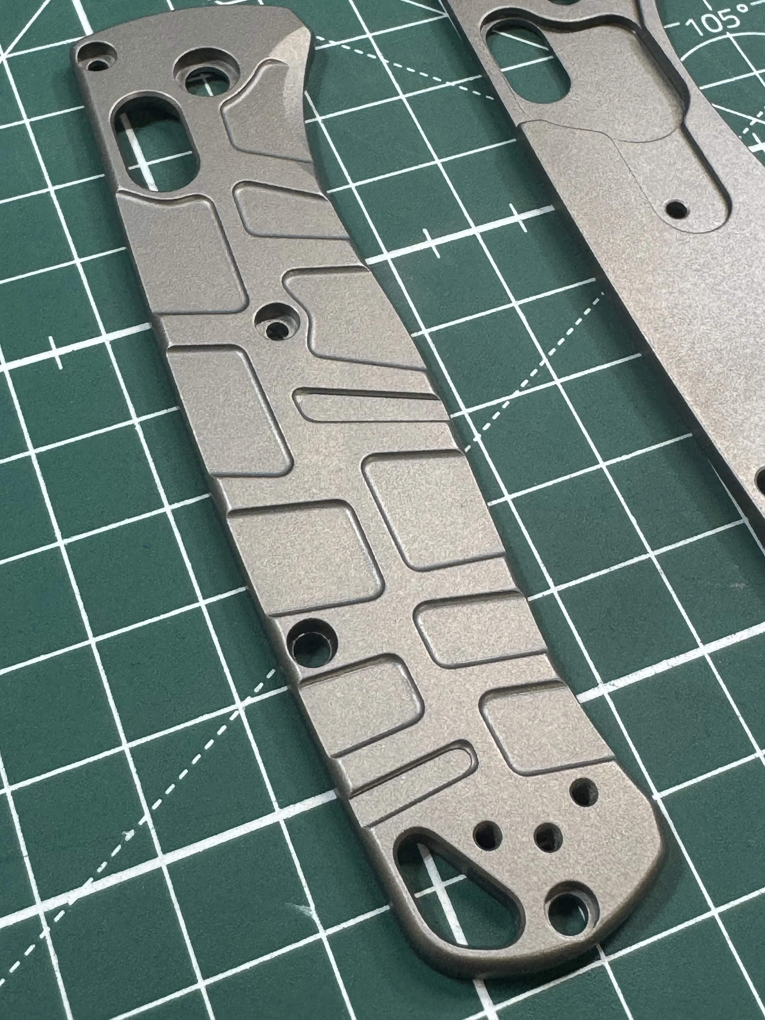 Benchmade Mini AdamasGrade 2 TitaniumWeght 2 ozFinishes: Stonewashed, Glass bead polished and many different Cerakote colors Benchmade Bugout Grade 2 TitaniumWeght 2 ozFinishes: Stonewashed, Glass bead polished and many different Cerakote colors